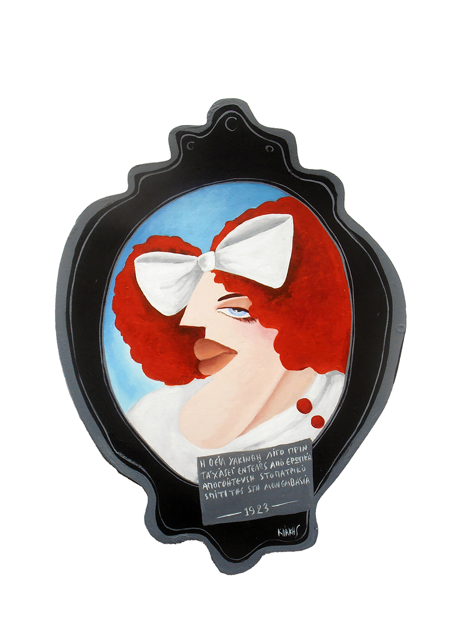 Έργο από τη σειρά «Το Σόι μου» που παρουσιάστηκε στην Cheap Art Θεσσαλονίκης το 2014, (ζωγραφική πάνω σε κομμένο ξύλο).