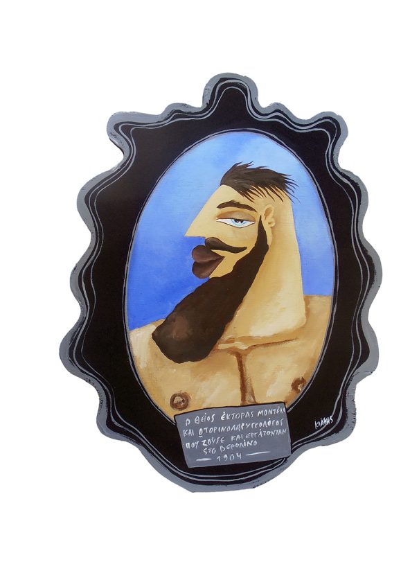 Έργο από τη σειρά «Το Σόι μου» που παρουσιάστηκε στην Cheap Art Θεσσαλονίκης το 2014, (ζωγραφική πάνω σε κομμένο ξύλο).