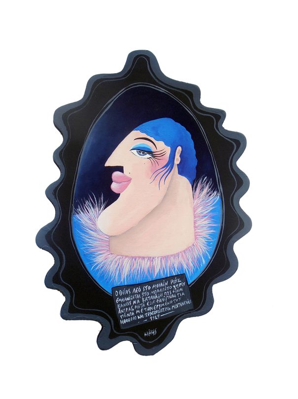 Έργο από τη σειρά «Το Σόι μου» που παρουσιάστηκε στην Cheap Art Θεσσαλονίκης το 2014, (ζωγραφική πάνω σε κομμένο ξύλο).