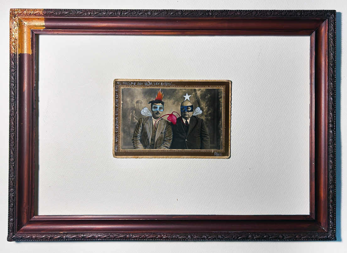 Έργο ζωγραφισμένο με ακρυλικό πάνω σε φωτογραφία του 1920, είναι τοποθετημένο σε αναπαλαιωμένη κορνίζα του 1950.