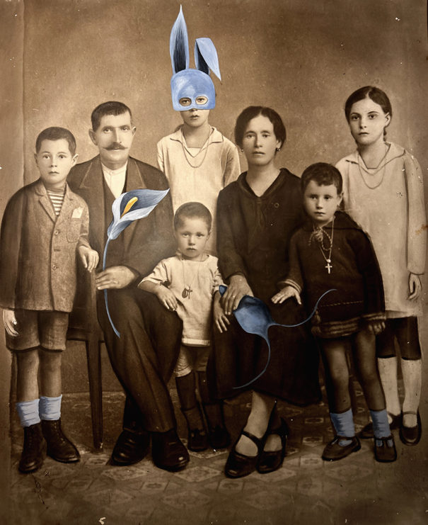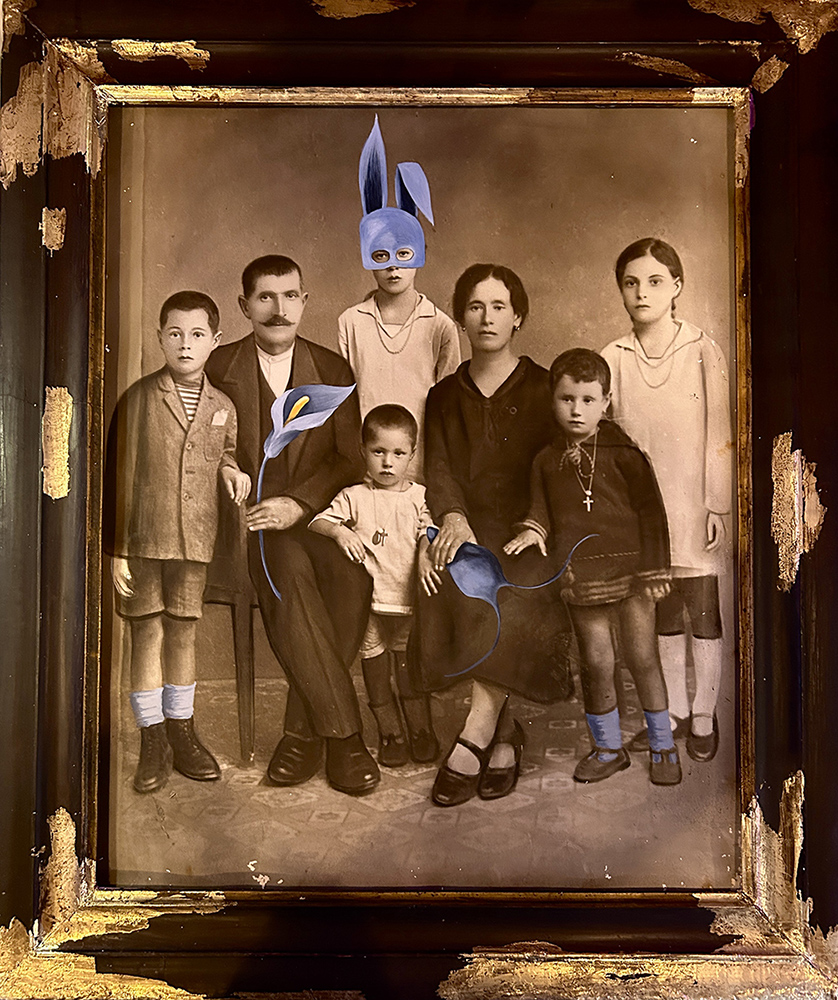 Η τόλμη. Χαϊδέψαμε με θαυμασμό τα ακέραια βλέμματα των τολμηρών. Έργο ζωγραφισμένο με ακρυλικό πάνω σε φωτογραφία του 1935, είναι τοποθετημένο σε αναπαλαιωμένη κορνίζα του 1940. Διάσταση έργου με την κορνίζα /60χ70/ 2024.