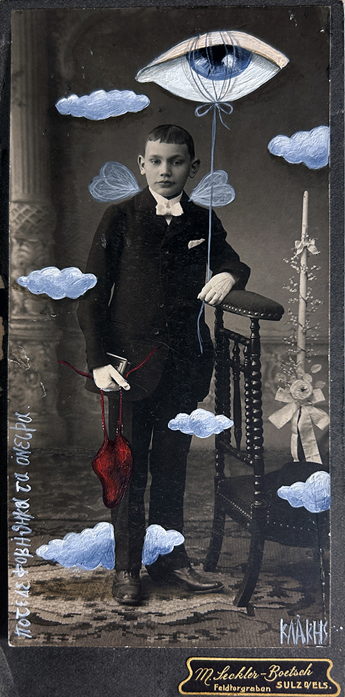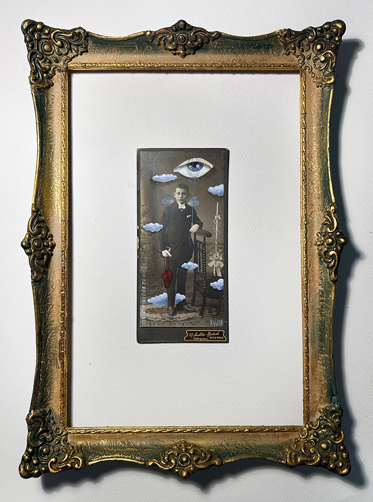 Το θάρρος. Ποτέ δε φοβήθηκα τα όνειρα. Έργο ζωγραφισμένο με ακρυλικό πάνω σε φωτογραφία του 1900, είναι τοποθετημένο σε αναπαλαιωμένη κορνίζα του 1930.
