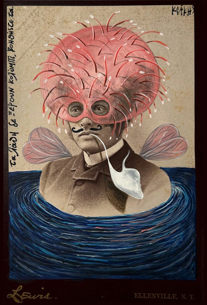 Το κολύμπι. Τα λάθη δεν ξέρουν κολύμπι, βοηθήστε τα. Έργο ζωγραφισμένο με ακρυλικό πάνω σε φωτογραφία του 1900, είναι τοποθετημένο σε αναπαλαιωμένη κορνίζα του 1930. Διάσταση έργου με την κορνίζα /33χ39/ 2024.
