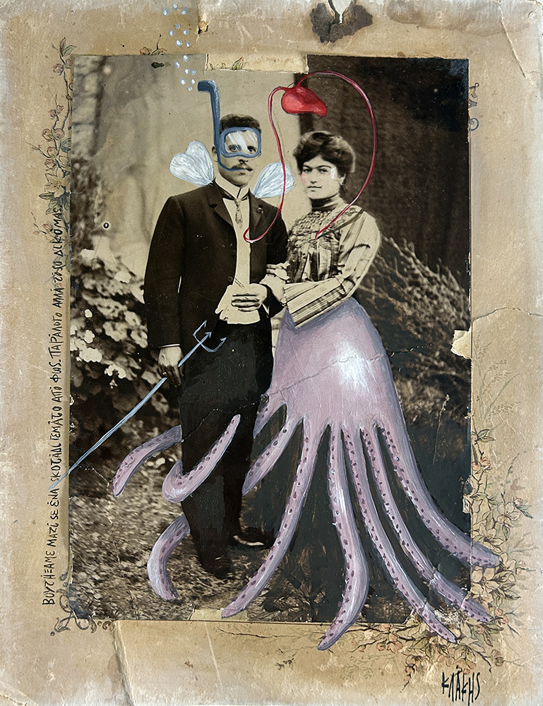 Έργο ζωγραφισμένο με ακρυλικό πάνω σε φωτογραφία του 1922, είναι τοποθετημένο σε αναπαλαιωμένη κορνίζα του 1930.